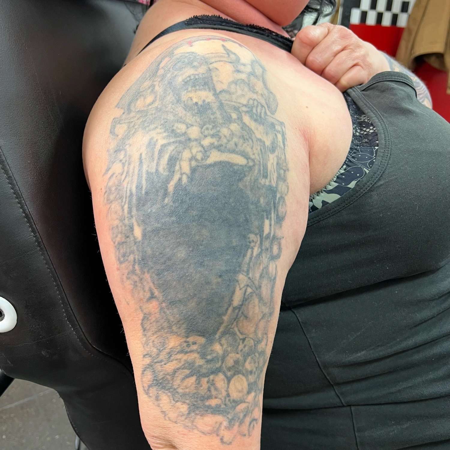 Wir trauen uns auch an schwierige Cover Ups ran. Vereinbart am besten einen Beratungstermin und wir schauen zusammen nach Möglichkeiten. Grundsätzlich eignen sich Motive gut zum covern, die farbig sind und viel Struktur haben; z.B. Blumen oder Koi Fische. Schlussendlich